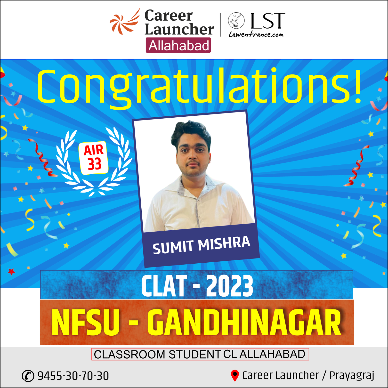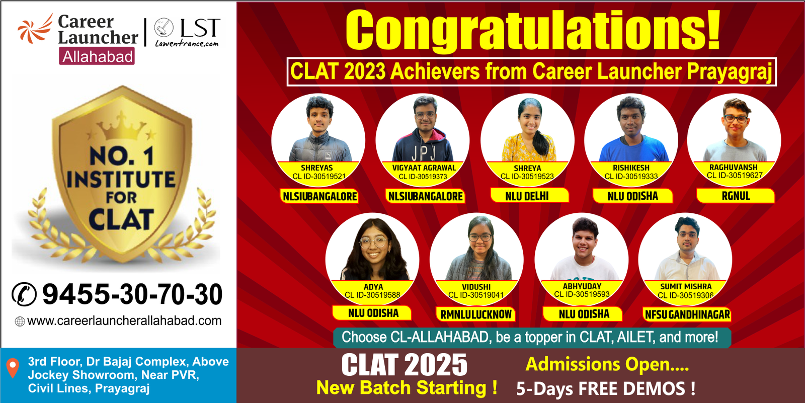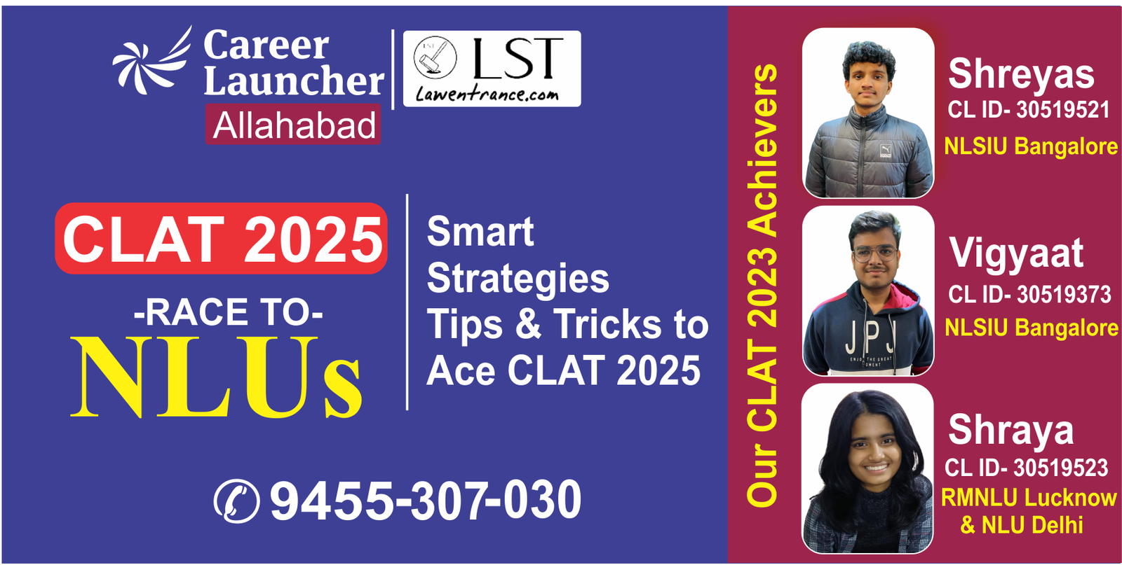 Think Career Launcher, Crack CLAT. 7/10 Top Ranks in CLAT 2023,6/10 Top Ranks in AILET 2023. India’s Leading CLAT/AILET/SLAT/MHCET Coaching with top rankers in CLAT & AILET for 16 Consecutive years.