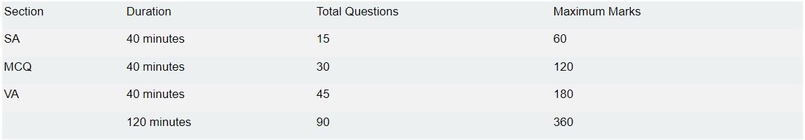 There will be three sections in the Aptitude Test namely Quantitative Ability (Multiple Choice Question-MCQ), Quantitative Ability (Short Answer Question-SA) and Verbal Ability (Multiple Choice Question-MCQ).